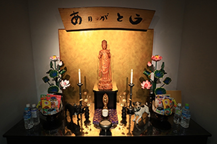 合同での火葬となります。お別れまでは個別セレモニーと同じ内容となっております。 火葬終了後、スタッフにて拾骨させていただき、当園の永代供養合同墓地〈馬頭観世音菩薩合同納骨堂〉へ納骨させていただきます。