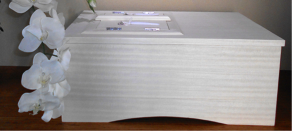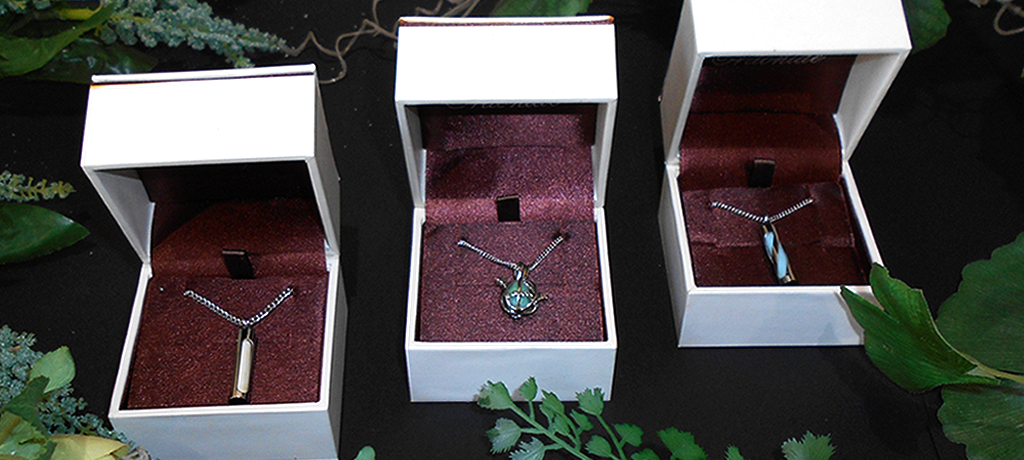 ご希望に応じた大きさの骨壺をセレモニー当日は、 骨袋とセットでご用意させていただきます。粉骨も承ります。